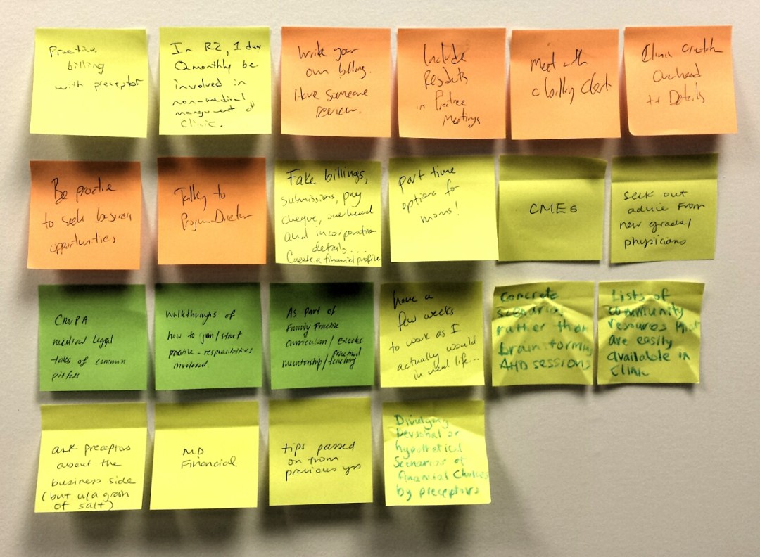 Recently our Abbotsford-Mission & Chilliwack residents discussed the challenges and opportunities in their transition to practice. The session’s goals were to understand how our program can build on residents’ skills and education as well as provide them the support to explore and determine their path to practitioner. Therefore, we asked participants to identify the resources and vehicles they needed to be successful and then we had them prototype this learning experience.