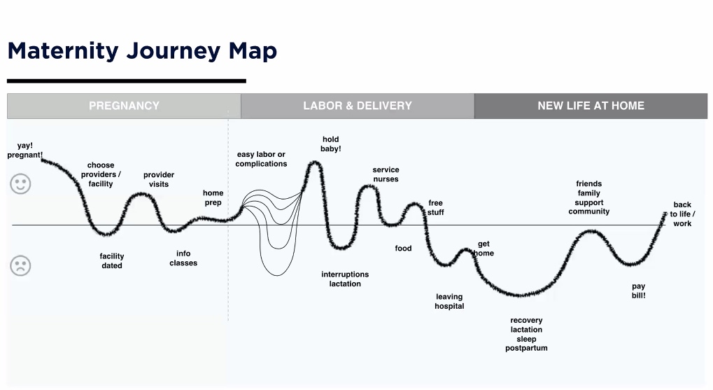 Hope you are well! We’ve had the opportunity in our Academic Half Day to discuss journey mapping. It was brought up again in IDEO’s session yesterday on “How to Reimagine the Healthcare Experience” (see image above). One of the useful aspects of patient journey mapping is that it helps practitioners/learners as well as the patient/caregivers understand where their roles are positioned and potentially most influential in the patient experience. If you’re interested in learning more on this method, TUDelft facilitates a tuition-free EdX course on “Design in Healthcare: Using Patient Journey Mapping.”