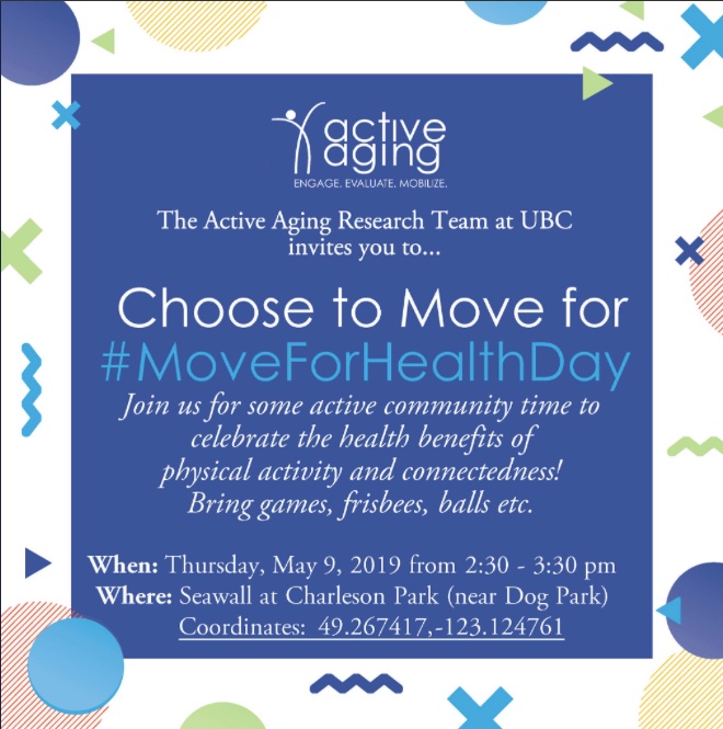 #MoveforHealthDay is coming up! Join UBC tomorrow for a movement break for your own #health! #GlobalBC‘s Dr. Art Hister will be there! Hope you are too! #YVR #PhysicalActivity #Getoutside #ParticipACTION #BCRPA #GreaterVanYMCA #UWLM #ubcnews #UBCmedicine #VCHResearch #ubcprez