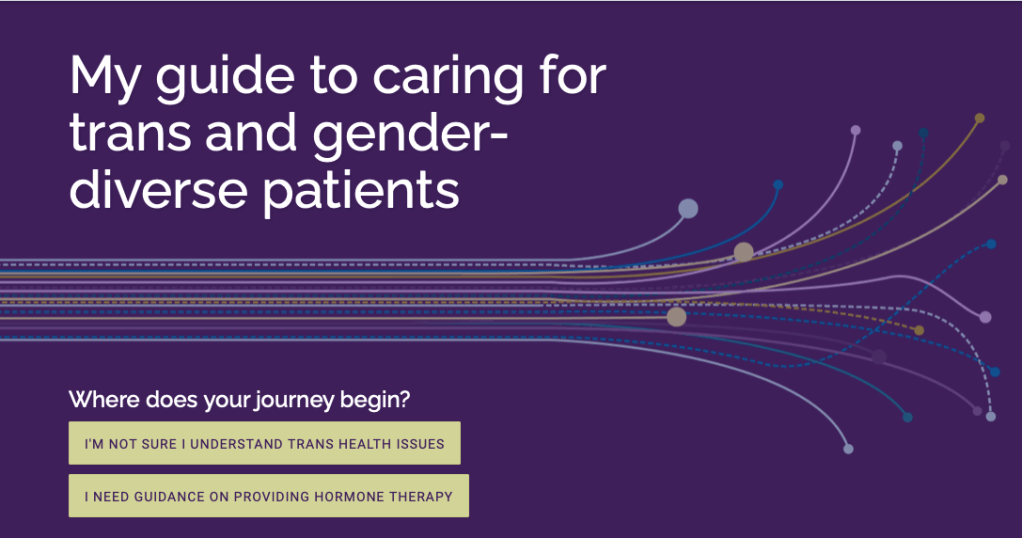 Visit and learn more on My Guide to Caring for Trans and Gender-Diverse Patients via Rainbow Health Ontario.
