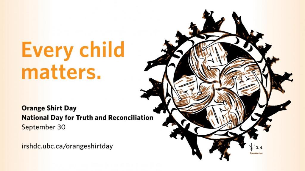 | This year, September 30 will also mark the first National Day for Truth and Reconciliation – an opportunity to recognize and commemorate the legacy of residential schools. As President Ono stated in the August 18 broadcast, all members of the UBC community are encouraged to honour the National Day for Truth and Reconciliation, whether through personal reflection, education and awareness activities or by participating in events within your communities. To help each of us advance our understanding of residential school history, consider exploring or participating in the following: Tour the Indian Residential School History and Dialogue Centre website, which provides access to various educational materials, including a page focused on raising awareness about Orange Shirt Day. Immerse yourself in a new website from the team at the Office of Indigenous Strategic Initiatives featuring several new items, including impact stories, implementation updates, and funding opportunities. Complete Respect, Sincerity & Responsibility: Land Acknowledgements at UBC, a sixty-minute self-paced course exploring what land acknowledgements are, their importance and addressing barriers in making an acknowledgement. Read the UBC Beyond story 6 ways to deepen your understanding of Indian residential school history. ATTEND AN UPCOMING EVENT: Tuesday, Sept. 21: “Picking up the Pieces: The Making of the Witness Blanket” Film Screening and conversation with Kwagiulth master carver Carey Newman and his sisters Marion and Ellen Tuesday, Sept. 21: Welcoming Students Back to Campus: Supporting Classroom Climate with UBC Indigenous Resources Monday, Sept. 27: “Returning Home and Pathways to Reconciliation” Film screening and conversation with Orange Shirt Day originator Phyllis Webstad Tuesday, Sept. 28: Join the Faculty of Medicine: Truth Telling: A first step toward reconciliation Wednesday, Sept. 29: The 94 TRC Calls to Action: A Participatory Reading – Joint STEM faculty event Thursday, Sept. 30: Intergenerational March for Orange Shirt Day – Joint STEM faculty event |