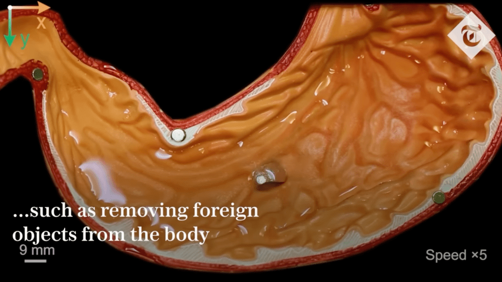“Scientists have been developing magnetically controlled soft robots for years. Most existing materials for these bots are made of either stretchy but solid materials, which can’t pass through the narrowest of spaces, or magnetic liquids, which are fluid but unable to carry heavy objects (SN: 7/18/19).